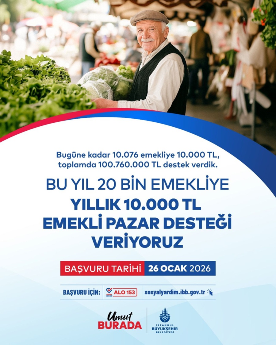 Artan hayat pahalılığı karşısında emeklilerin yanında yer alan sosyal destek programı, bu yıl da devam ediyor. 2026 yılı için planlanan “Emekli Pazar Desteği” kapsamında 20 bin emekliye kişi başı 10 bin TL ödeme yapılacak. Toplam bütçe 200 milyon TL olarak ayrıldı.