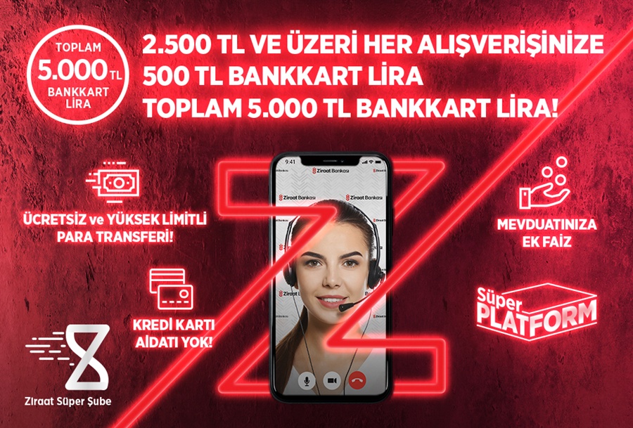 Ziraat Bankası, dijital kanallar üzerinden müşteri olan bireyler için yeni bir harcama kampanyasını devreye aldı. Ziraat Mobil uygulamasıyla uzaktan hesap açan ve Bankkart kredi kartı başvurusu onaylanan kullanıcılar, alışverişlerine bağlı olarak toplam 5.000 TL’ye kadar Bankkart Lira kazanabiliyor.